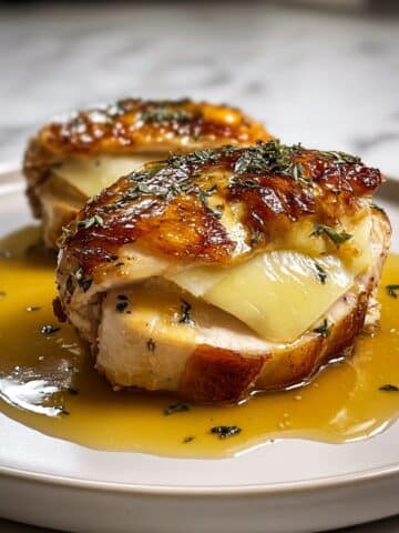 This Apple and Brie Stuffed Chicken recipe features tender boneless chicken breasts filled with a savory mixture of creamy brie cheese, sautéed Granny Smith apples, fresh thyme, and honey. Seared to a golden brown and baked to perfection, this dish offers a delicious blend of sweet and savory flavors ideal for a comforting yet elegant meal.