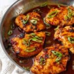 This Glazed Apricot Chicken recipe features tender, juicy chicken thighs cooked in a sweet and savory apricot glaze. Infused with garlic, smoked paprika, ginger, and soy sauce, this dish is a delightful blend of flavors that come together quickly in a skillet, perfect for a flavorful weeknight dinner.