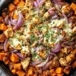 This BBQ Chicken Sweet Potato Skillet is an easy, one-pan dinner that combines tender sweet potatoes, smoky BBQ chicken, and melty cheddar cheese for a flavorful and satisfying meal perfect for busy weeknights.