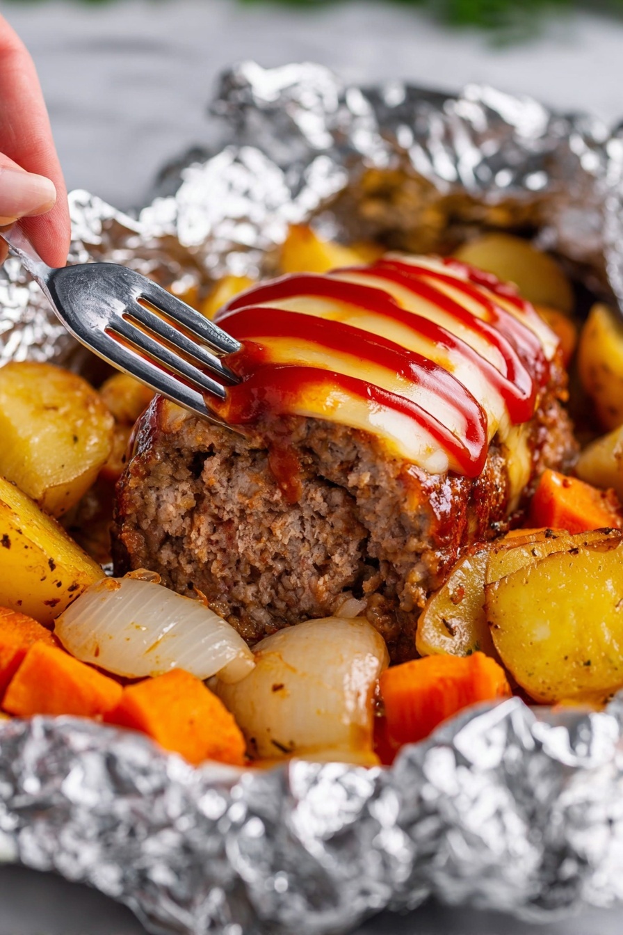 When plating your foil packets, open them just before serving to reveal those colorful vegetables and melting cheese. Arrange on a warm plate with height by stacking the patty atop the veggies, and keep edges clean by wiping any drips away. If you want to snap a photo, catch the steam rising with natural light from the side-this highlights the tender, juicy textures that make this dish so inviting.