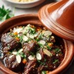 This hearty and aromatic Beef Tagine recipe combines tender beef chuck simmered with traditional Moroccan spices, dried fruits, and preserved lemon to create a flavorful and comforting meal. Enhanced with vegetables like carrots, potatoes, and chickpeas, and garnished with toasted almonds and fresh herbs, this slow-cooked dish is perfect for a cozy dinner that delivers rich, complex flavors with every bite.