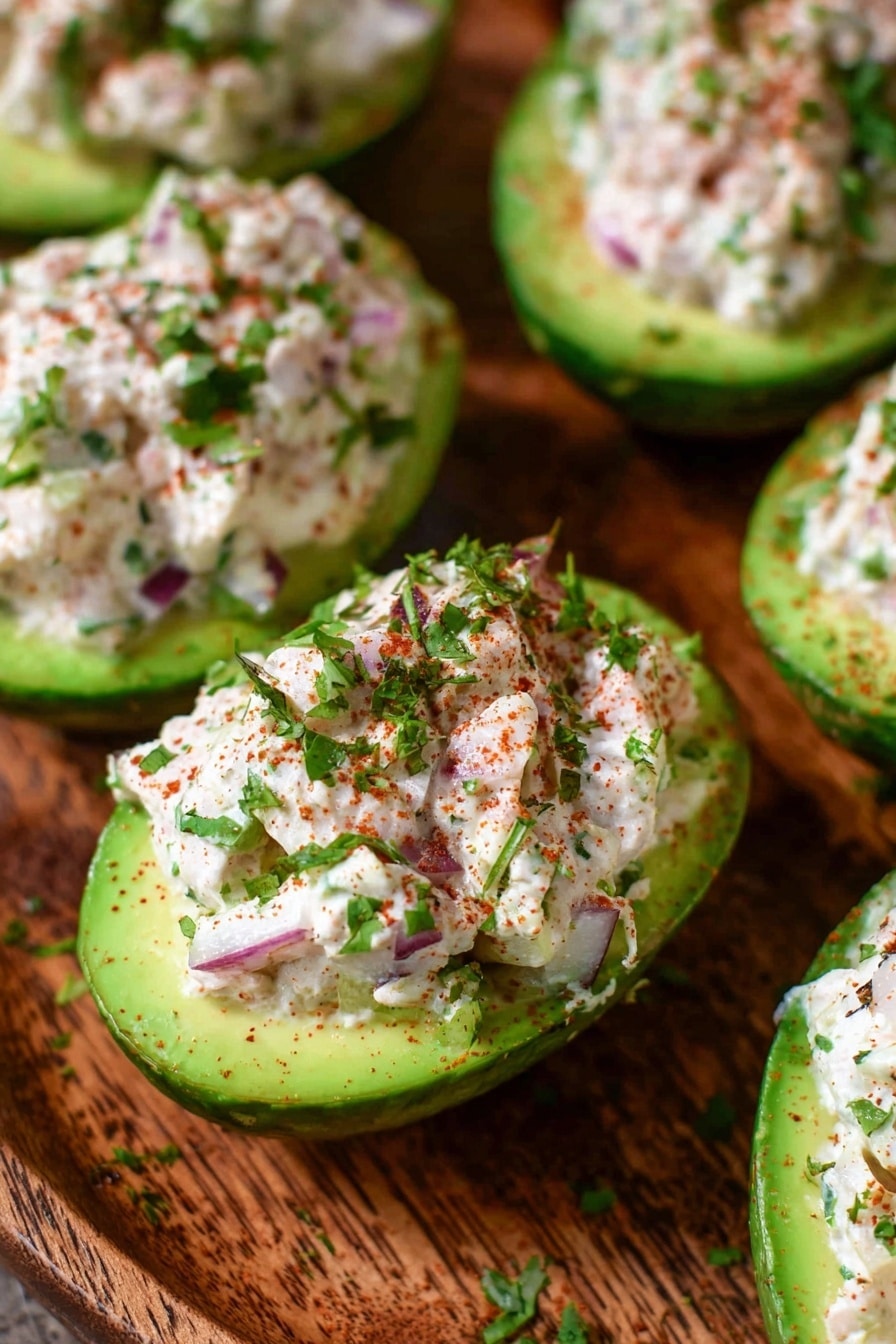 Garnish your stuffed avocados with a sprinkle of fresh chopped parsley or cilantro for a green herb lift. A gentle drizzle of extra virgin olive oil or a cool sour cream swirl adds shine and richness. For brightness, scatter thinly sliced radish or add a few pomegranate seeds. A final dusting of smoked paprika or chili powder accentuates the warmth and brings an inviting color contrast.
