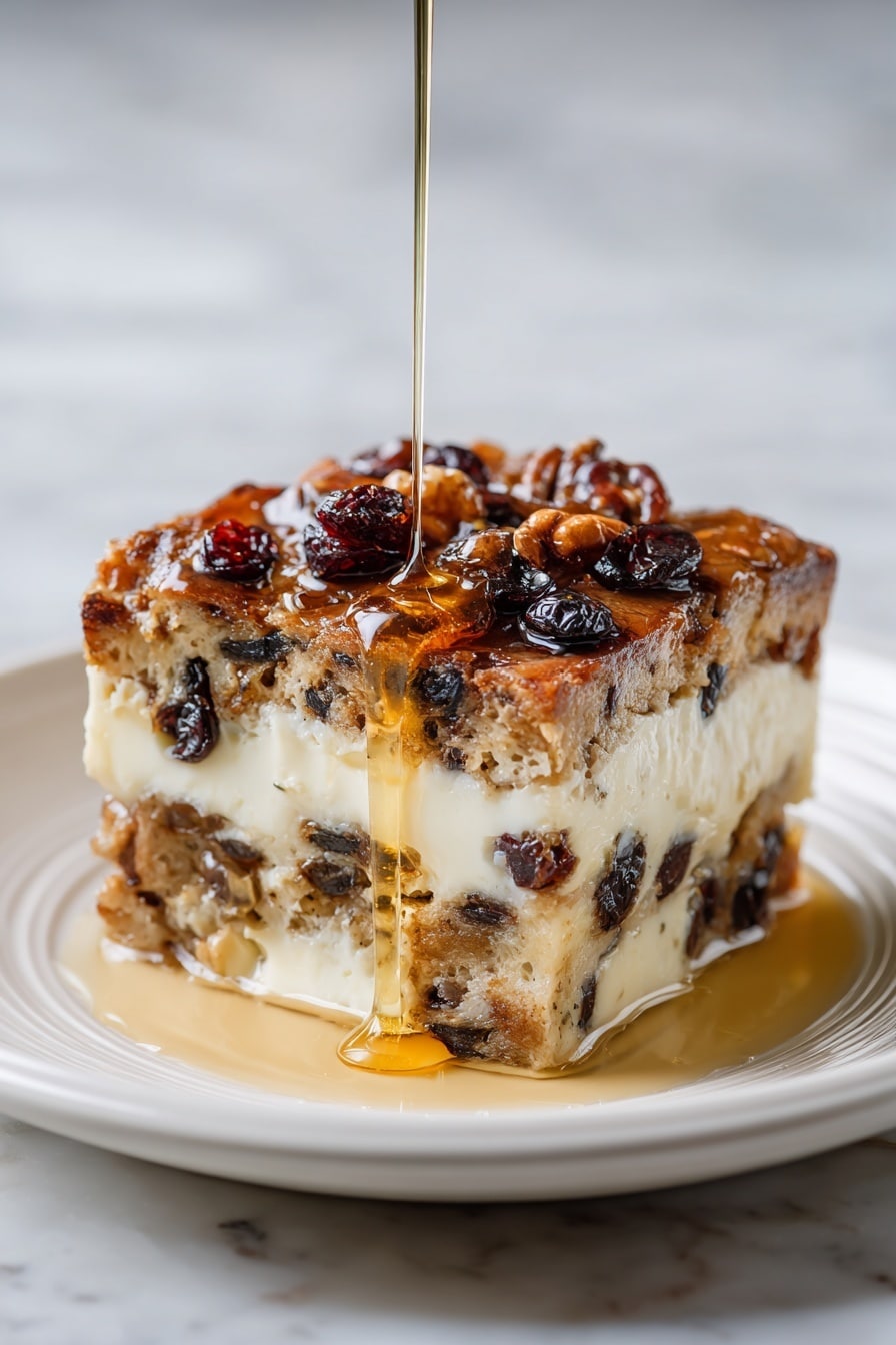 Play with layering in your serving dish to show off the pudding's golden top and colorful raisins. Use a spatula to cut clean, neat squares with a slight lift to showcase the soft, syrupy center. Garnish with a fresh cinnamon stick or a sprig of mint for a picture-ready touch. For food photography, natural side light works magic here, highlighting that glossy syrup sheen and golden crust.