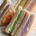 These Easy Colorful Tea Sandwiches are a vibrant and healthy snack featuring layers of creamy avocado cilantro dressing, tangy yogurt mixed with finely chopped carrots and purple cabbage, all stacked between slices of wholegrain or rye bread. Perfect for tea-time or as a light appetizer, these sandwiches combine fresh vegetables, flavorful spreads, and soft bread to create a visually appealing and delicious treat.