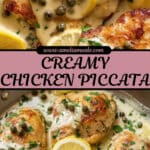 This Creamy Chicken Piccata recipe features tender, pan-seared chicken breasts coated in a light flour dredge and topped with a luscious lemon-caper cream sauce. Perfectly balanced with garlic, fresh parsley, and a touch of butter, this dish is both elegant and comforting-ideal for a quick weeknight dinner or a special occasion.