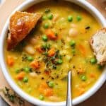 A hearty and creamy one-pot vegetable soup featuring fresh vegetables, nutritional yeast, and dairy-free ingredients for a deliciously comforting and nutritious meal. Perfect for a cozy lunch or dinner, this recipe is simple to make and can be enjoyed vegan and gluten-free by using appropriate substitutions.