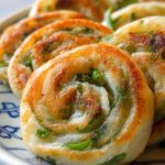 These Crispy Rice Paper Scallion Pancakes offer a delightful texture and fresh, aromatic flavor with a nutty hint from sesame oil. Featuring a unique crispy exterior from the rice paper and a flavorful scallion filling, these pancakes are pan-fried to golden perfection and served with a tangy, spicy dipping sauce.