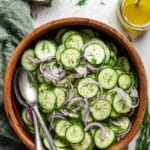 A refreshing and vibrant cucumber and red onion salad tossed with a zesty lemon-dijon dressing infused with garlic, honey, and fresh dill. This light salad is perfect as a side dish for warm days or as a crisp addition to any meal.