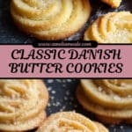 Classic Danish Butter Cookies with a delicate, tender texture and rich buttery flavor. These cookies are piped into elegant shapes and baked to golden perfection, perfect for tea time or gifting during the holidays.