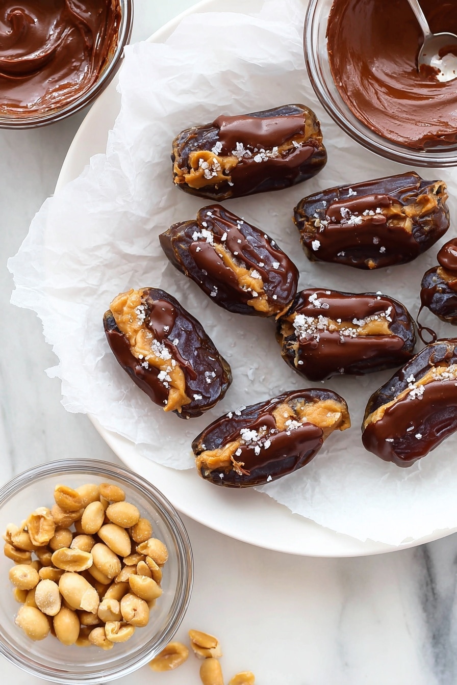 While this recipe doesn't involve actual cooking, melting your chocolate requires gentle attention. I prefer the double boiler method: an inch of simmering water under a snug bowl lets the chocolate melt slowly-this ensures silky smoothness without burning. Stir frequently; watch for that shiny, warm pourable texture. When drizzling over your peanut-studded dates, aim for even coverage-not too thick, so the chocolate sets fast but still has a soft snap. This is a great moment to enjoy the warm chocolate aroma filling your kitchen.