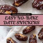 This Date Snickers recipe is a delightful no-bake treat that combines the natural sweetness of Medjool dates with creamy peanut butter, crunchy chopped peanuts, and rich dark chocolate. Finished with a sprinkle of flaky sea salt, these bite-sized snacks offer a perfect balance of sweet, salty, and crunchy flavors, making them an easy and delicious homemade candy alternative.
