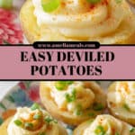 Delicious and creamy deviled potatoes made by boiling baby potatoes, scooping out their centers, and mixing the filling with mayonnaise, mustard, and pickle juice. This easy appetizer is garnished with paprika and green onions, perfect for parties or a tasty snack.