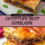 Egyptian Beef Goulash, also known as Phyllo Beef Pie, is a savory layered pastry dish featuring spiced ground beef or lamb, aromatic herbs, nuts, and tamarind paste, all baked between flaky phyllo dough sheets. This comforting and flavorful pie is perfect for a hearty meal and showcases traditional Egyptian flavors with a crunchy golden crust.