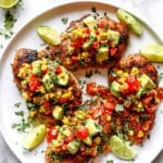 Fiesta Lime Chicken is a vibrant and flavorful dish featuring juicy chicken breasts marinated in a zesty lime and chili-spiced rub, cooked to perfection on the stovetop or grill. Served with a fresh and colorful avocado salsa packed with corn, tomatoes, and peppers, this recipe delivers a perfect balance of smoky, tangy, and spicy flavors ideal for a quick and healthy meal.
