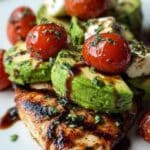 This Grilled California Avocado Chicken recipe features juicy boneless chicken breasts marinated in a zesty blend of lime, garlic, and spices, then grilled to perfection and topped with creamy California avocado slices, fresh cherry tomatoes, and melted mozzarella or Monterey Jack cheese. It’s a quick and flavorful meal that brings a fresh, vibrant twist to classic grilled chicken, perfect for a healthy weeknight dinner or weekend barbecue.