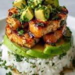 This Honey Lime Chicken & Avocado Rice Stack is a vibrant and flavorful grilled dinner featuring juicy marinated chicken breasts, fragrant jasmine rice, and a fresh avocado topping. Perfect for a healthy and satisfying meal, the recipe combines sweet honey, tangy lime, and aromatic spices to create a delicious layering of flavors and textures in an easy-to-assemble stack.