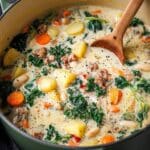 This Italian Sausage and White Bean Soup is a hearty and comforting dish, perfect for chilly days. It combines flavorful Italian sausage with tender potatoes, creamy white beans, and nutrient-rich Tuscan kale in a thickened, savory broth enhanced with herbs, garlic, and a touch of cream. Finished with a splash of red wine vinegar and fresh herbs, this soup delivers a balanced mix of savory, creamy, and tangy flavors.