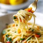 A light and refreshing Lemon Capellini Salad featuring delicate angel hair pasta tossed with zesty lemon juice, vibrant tomatoes, tangy capers, and fresh parsley, perfect for a quick and easy summer dish or side.
