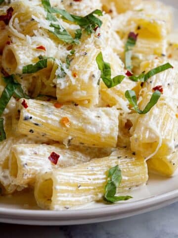 If you want to freeze, portion into meal-sized containers and freeze up to 1 month. Ricotta-based sauces sometimes separate when frozen, so I recommend defrosting slowly in the fridge and gently reheating with added liquid to bring it back to silky perfection.