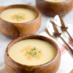 A warm and comforting Pear and Sweet Potato Soup combining the natural sweetness of pears with earthy sweet potatoes and russet potatoes, enhanced by aromatic thyme and caramelized pear topping for added texture and flavor.