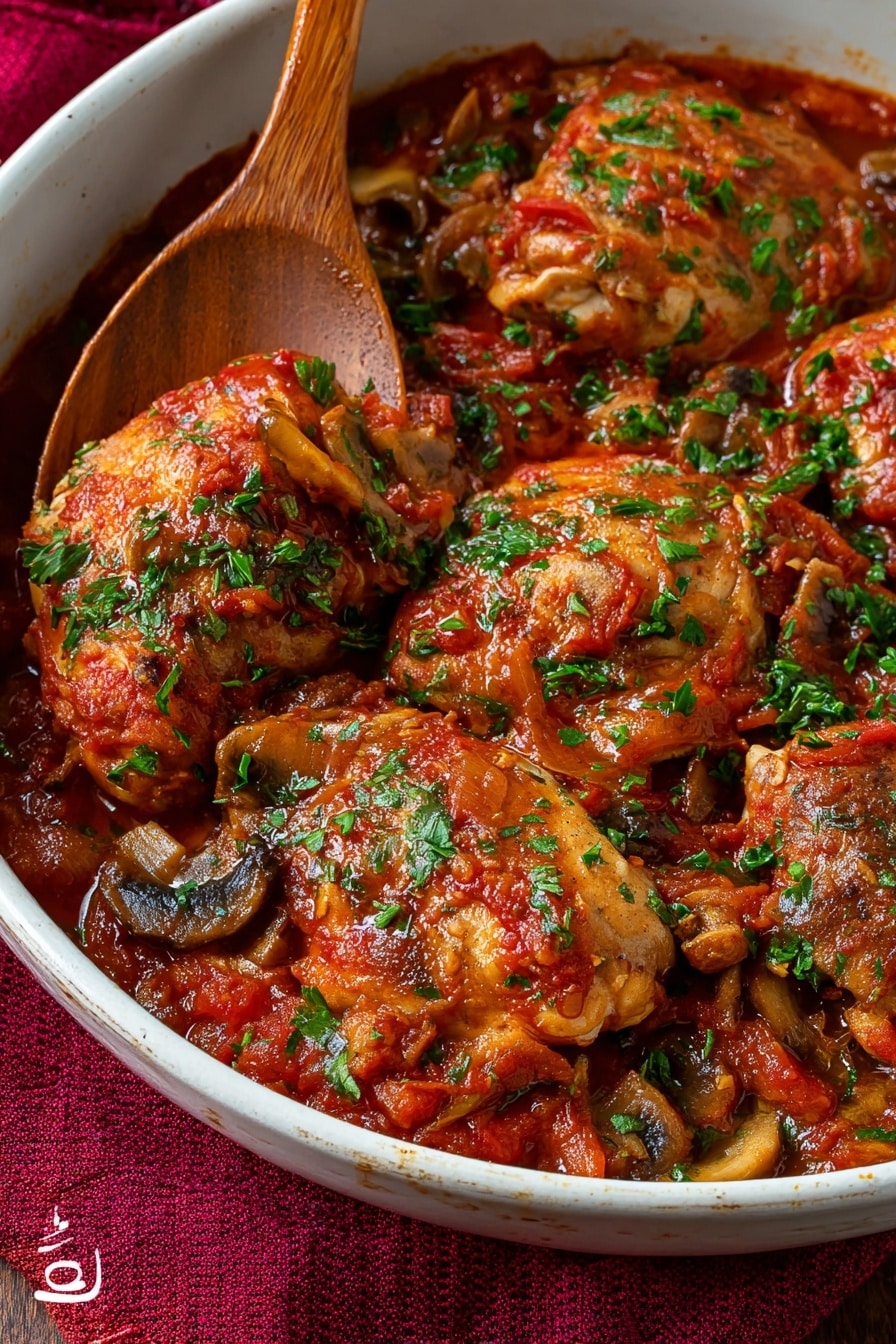 There's something truly soothing about cozying up to a bowl of Slow Cooker Chicken Cacciatore Recipe. The tender chicken, gently simmered in a rich, tomato-kissed sauce with earthy mushrooms and bright herbs, creates a warming hug for your taste buds. Picture the aroma of garlic and fresh herbs filling your kitchen while the sauce thickens into a luscious, buttery-soft stew. It's an effortless recipe that fills your home with inviting comfort, perfect for sharing over a rustic loaf or creamy polenta on a cool evening.