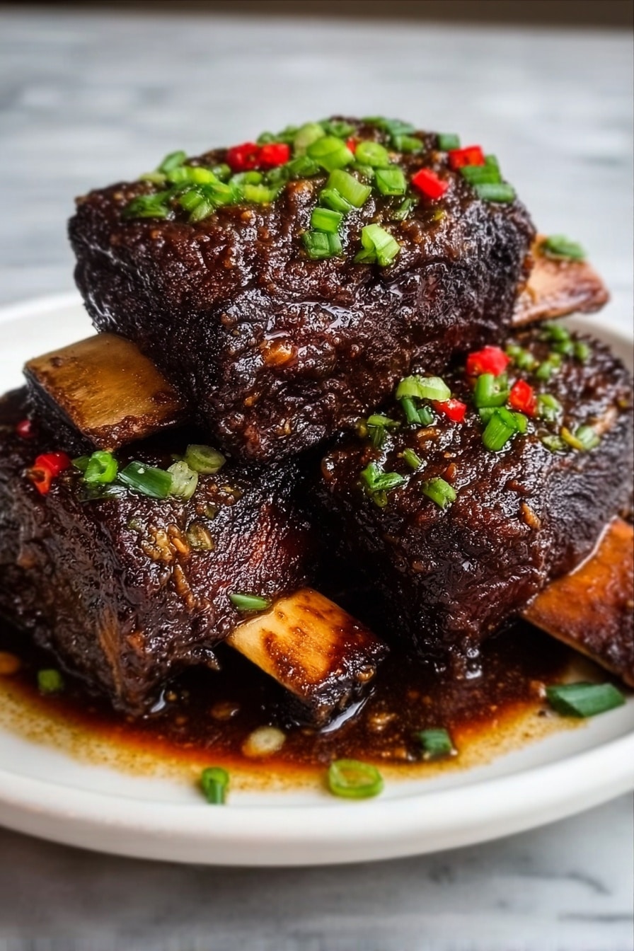 This Caramelized Slow Roast Asian Beef Short Rib recipe delivers tender, sticky, and umami-packed ribs with a rich blend of soy, hoisin, mirin, and aromatic spices. Slow-roasted to perfection, these ribs feature a deep golden crust, a luscious glaze, and a perfect balance of sweet and savory flavors. Ideal for serving over steamed rice, noodles, or roasted vegetables, garnished with fresh herbs and sesame seeds for an authentic Asian-inspired meal.