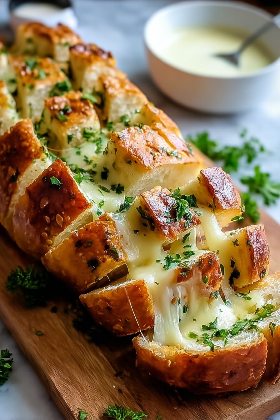 Fresh herbs like parsley or chives sprinkled right before serving brighten this garlic bread wonderfully. A drizzle of extra virgin olive oil or a light dusting of flaky sea salt adds a subtle crunch and shimmer. For a citrusy kick, try finishing with a few drops of lemon zest-infused oil for a surprising but delicious contrast.