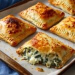 This Addictive Spinach Stuffed Pastry features flaky puff pastry filled with a savory mixture of sautéed spinach, creamy ricotta, and Parmesan cheese, seasoned with garlic and herbs. Perfect as a snack, appetizer, or light meal, these golden-brown pastries are easy to prepare and bake to perfection in under 40 minutes.
