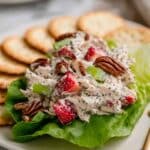 This refreshing Strawberry Pecan Poppy Seed Chicken Salad combines tender shredded chicken with crunchy pecans, sweet juicy strawberries, and a tangy poppy seed dressing. It's a perfect balance of flavors and textures, making it an ideal light lunch or picnic dish that's quick to prepare and delightful to eat.