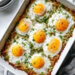 Sweet Pepper Hash Brown Baked Eggs is a delicious and hearty breakfast casserole featuring crispy baked hash brown potatoes topped with sweet green pepper rings filled with eggs, pizza sauce, and Parmesan cheese. This flavorful dish combines textures and savory flavors, perfect for a comforting morning meal or brunch.