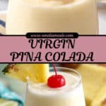 - Serve and Garnish: Pour the virgin piña colada into serving cups immediately. Garnish each cup with fresh pineapple wedges and maraschino cherries if desired for an attractive presentation.